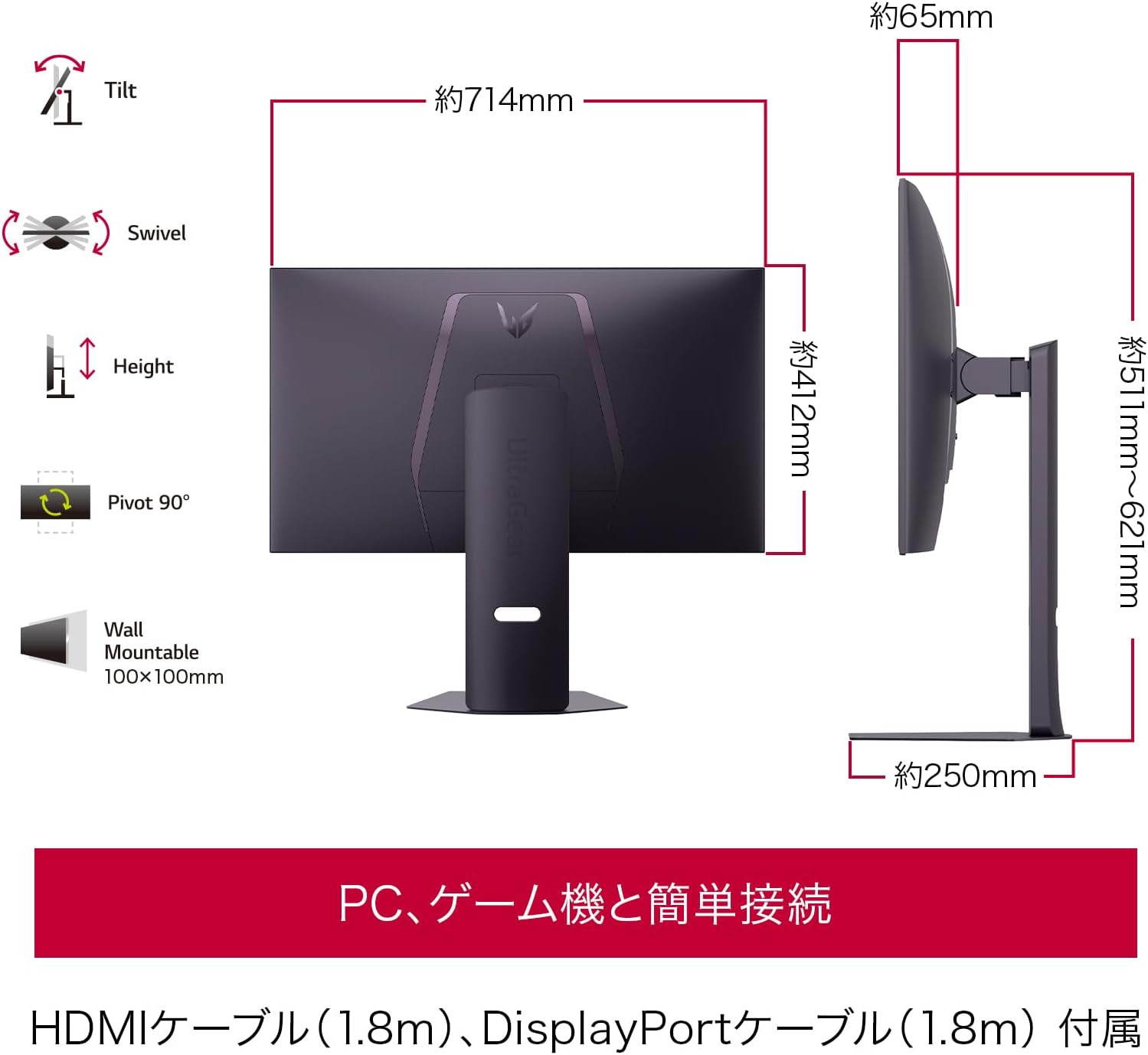 | 入力端子 | HDMI 2.1 x2, DisplayPort 1.4 x1 |